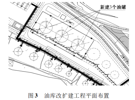 焊罐電動葫蘆提升大型立式儲罐的工程難點是生產與施工同時進行,需對油庫易燃易爆高危險區域進行綜合考慮,油罐四周有環形消防通道,施工過程中不能占用消防通道,保持暢通,北面是新的密閉隔油、污水棚和事故池,南面是正在運營的油罐,東面是預留罐區,西面是新發油臺和正在營業的發油臺,如圖3所示,整個施工場地的布置和使用較為緊張。