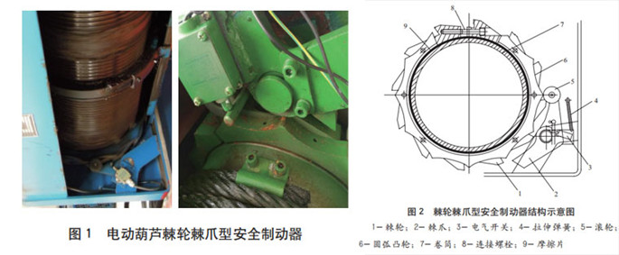 鋼絲繩電動葫蘆棘輪棘爪安全制動器的觸發制動原理